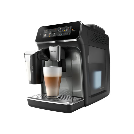 Series 3300 LatteGo Kaffeevollautomat EP3347/90 - 6 Getränke, Touchscreen-Display, SilentBrew, Keramikmahlwerk, AquaClean Filter. Schwarz Chrom